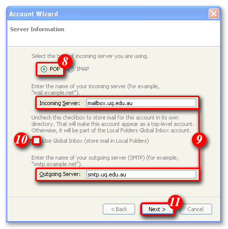 | 9)Enter 'mail.detexas.net' in the 'Incoming Server' field, and 'smtp.detexas.net' in the 'Outgoing Server' field. |