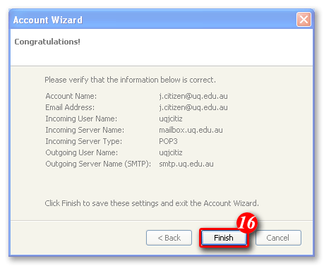 | 14)Thunderbird will automatically enter your email address as the account name. (It is recommended that you leave this 'as is'). |